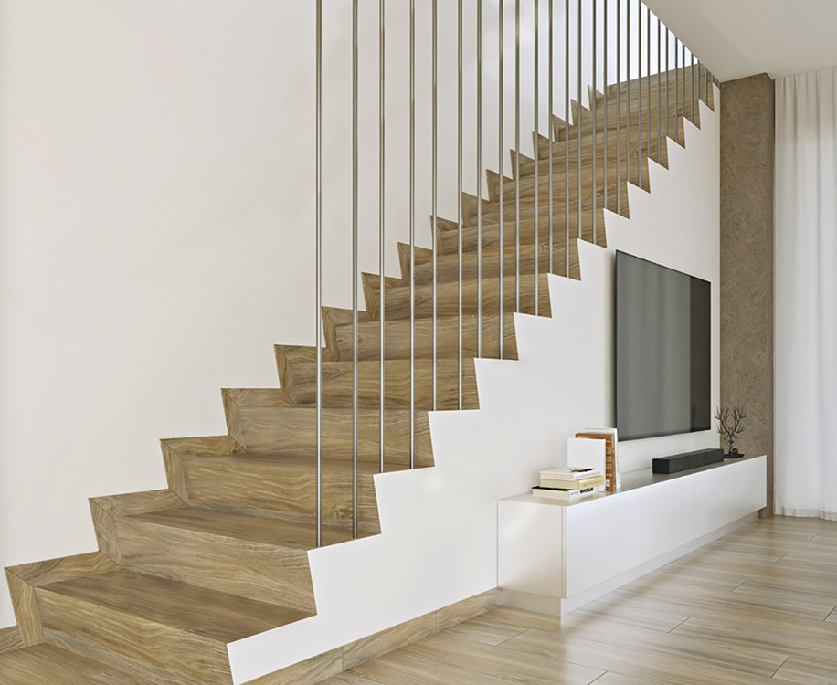 El peldaño Inclinado es ideal para escaleras con un diseño exclusivo y moderno. Permite un acabado limpio y continuo con el pavimento.