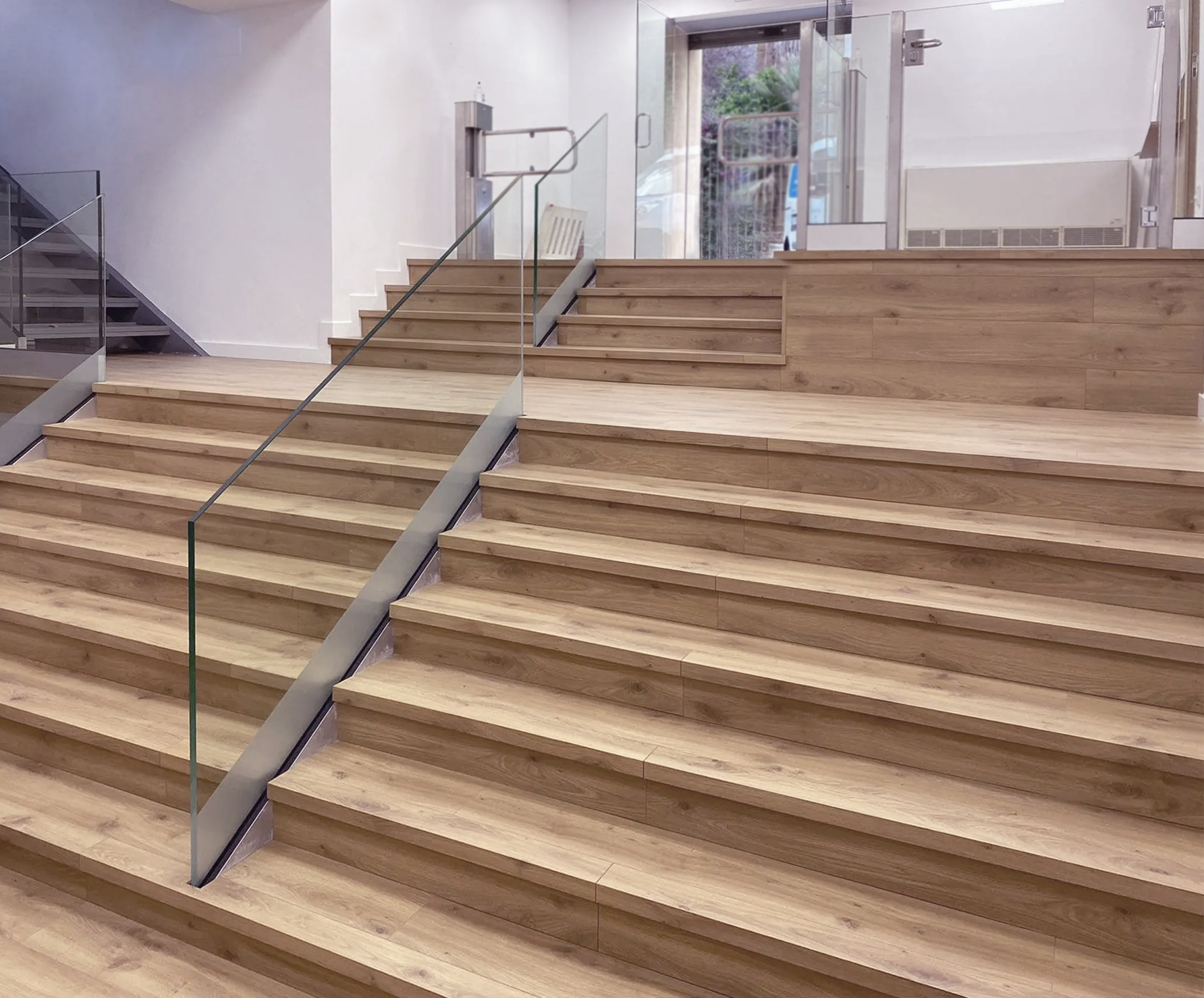 El peldaño GRADONE con refuerzo es ideal para recubrir escalones que no tienen mamperlán de origen y se quiere ampliar la superficie de la huella. Permite continuidad con el pavimento y un cambio estetico rápido y limpio.